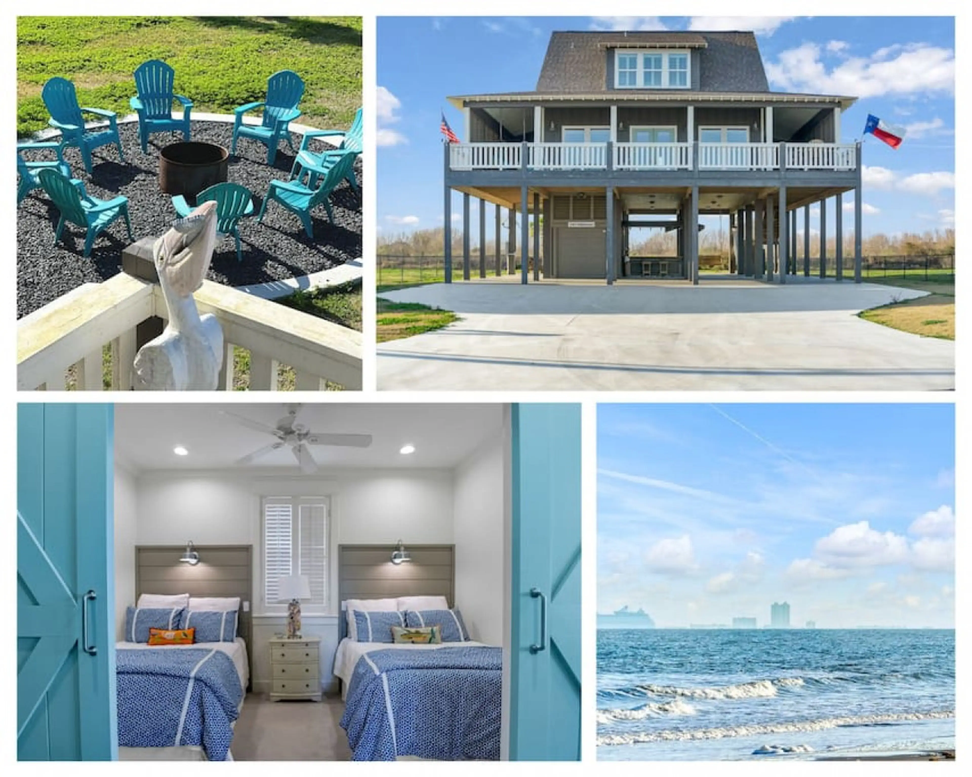 Come away to this amazing beach house in Crystal Beach with water views and walking distance to the beach. Outside, the property is all about lounging and entertainment, with a fire pit, hammocks, shady porches, sweeping balconies, a weber grill, and a ping pong table. Inside, you'll find 4 gorgeous...